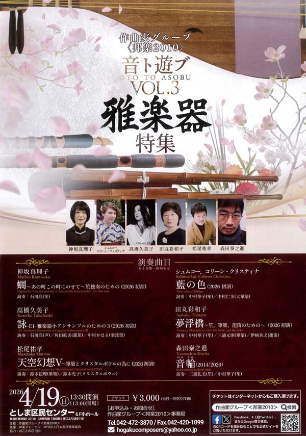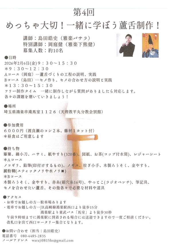 日時: 2026年 2月 1日(日)雅楽公演:16:30〜18:00(16:00開場)