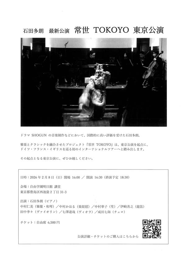 日時: 2026年 2月 8日(日)会場:自由学園明日館 講堂(〒171-0021 東京都豊島区西池袋2丁目20)